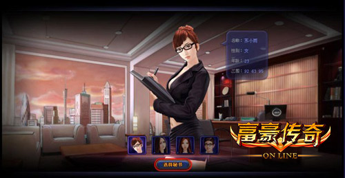 首先,玩家们登录陪游《富豪传奇》的游戏后,先选择适合自己的秘书。因为她将会是您以后驰骋商场的忠实伴侣,助你进入梦想镇,开始您的富豪之旅。