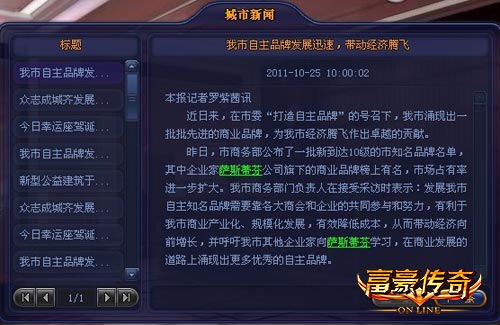 陪游富豪传奇中秘书每天都有四个基本的工作:收集新闻、收信和发信、指引工作和重大事件提示等。游戏中每天都有事情发生,比如说某位玩家出资兴建了市民广场,每天接待的客流量可达到五万人次,市长出席了广场落成仪式,并发表讲话;还有如昨日统计部门证实,诺亚市多家公司达到15级,为促进诺亚市经济增长做出了巨大的贡献等等。只要玩家在诺亚城中做出比较大的贡献,都会上新闻哦!而我们的秘书就是负责每天把这些新闻告知给玩家,让玩家可以充分了解其他玩家的情况,以做出应对措施。