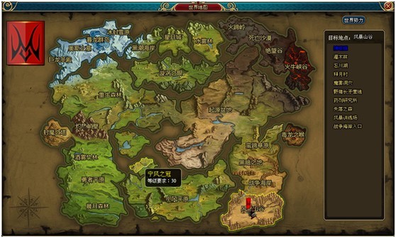 世界地图里都标明了各个地图的等级要求,只要点击右侧的节点名字,再选择一个移动方式就可以去到那个地点了。