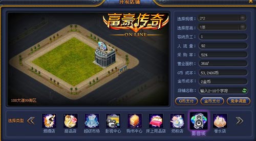 店铺的规模和楼层是相对应的,如果建立一幢2*2的规模的建筑那只能把店铺建成2层。每种大小的建筑所带来的容量员工数、人流量都是不同的。当然开的店铺越大,所需的建设成本也就越高,带来的收益自然也就越多。