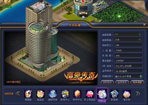 就拿香水店来说,规模为2*2的1层香水店,容纳员工的数量为1人,人流量只有92,所需要的G币成本是53240。而如果开设一家规模为7*7的25层香水店,容纳的员工达到了245人,所带来的人流量为72520,但所需要的G币成本也高达7亿多G币,这样的高价足以让许多富豪们望而怯步。