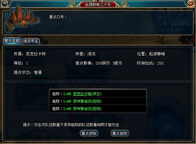 3、如果已经有玩家占领了这个据点,则需要战胜该玩家才能夺取据点,有时候你要面对的不仅仅是据点的主人,还有他的好友及雇佣的怪物。