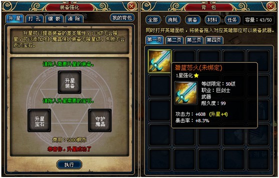 升星可以利用“守护魔晶”,确保玩家在装备升星失败以后不会掉级。
