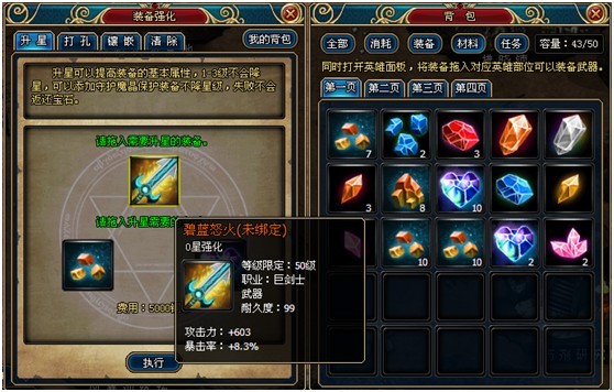 玩家可以花费星陨石等道具在装备商人处升星,来提升装备的等级。