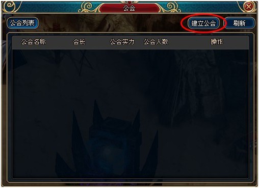 1、在右下角的功能栏里,打开“公会”可以进入到公会界面,首先点击“建立公会”。