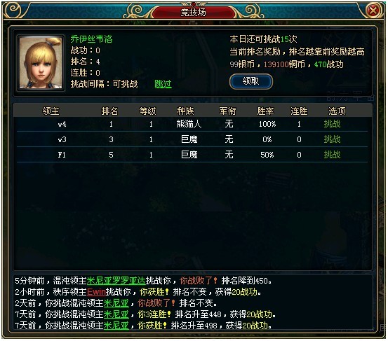 玩家每天可以挑战15次,每天可以根据玩家的排名获得一次竞技场的排名奖励,排名越高,奖励越是丰富,坦恩的勇士,你准备好了吗?
